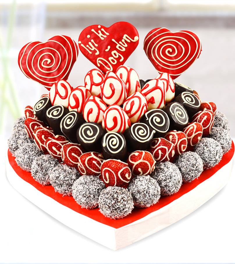 Ürünümüzde yaklaşık olarak, 20 adet bitter çikolata kaplı ve hindistan cevizi kaplı truffle, 16 adet sade işlemeli çilek, 11 adet çikolatalı muz dilimi, 10 adet çikolata kaplı işlemeli çilek veya çikolatalı truffle 3 adet kurabiye bulunmaktadır.