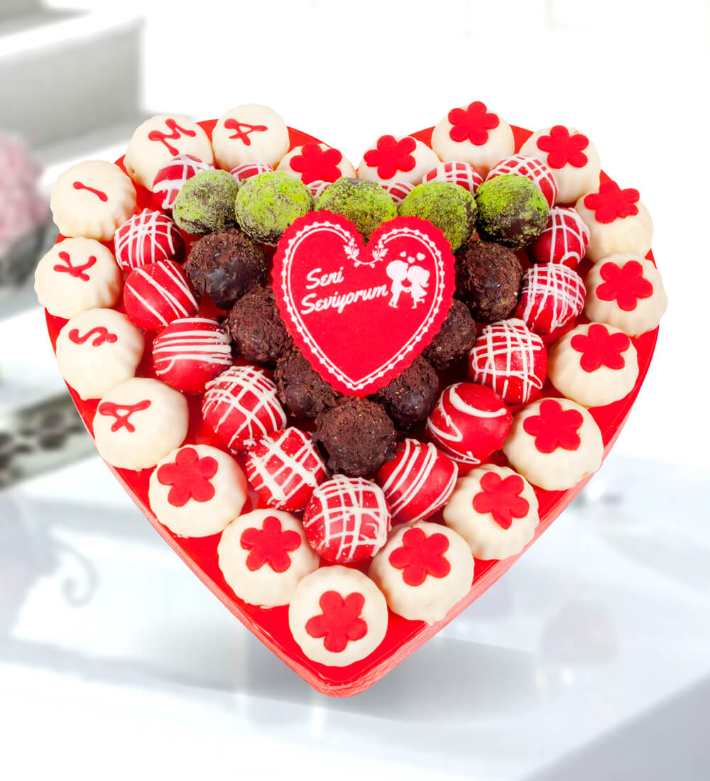 Ürünümüzde yaklaşık olarak 18 adet kurabiye çiçeği, 30 adet farklı çeşitlerde truffle, 1 adet seni seviyorum gofret bulunmaktadır.