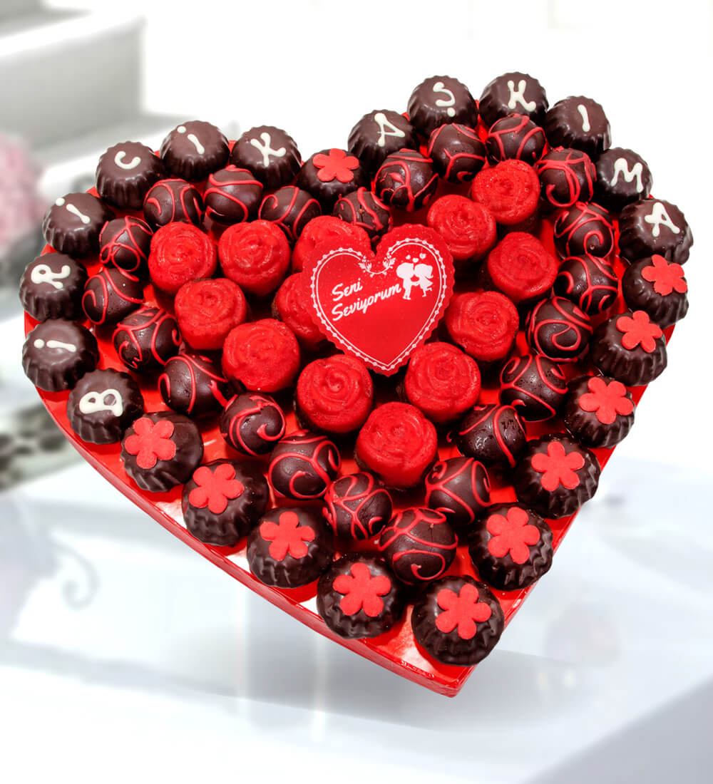 Ürünümüzde yaklaşık olarak 22 adet çikolatalı kurabiye çiçeği, 22 adet truffle,12 adet muffin gül kek bulunmaktadır.