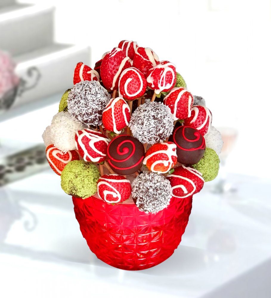 Ürünümüzde yaklaşık olarak 20 adet üzeri çikolata çizili çilek, 20 adet çikolatalı truflfle bulunmaktadır.
