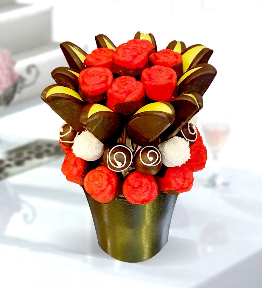 Ürünümüzde yaklaşık olarak 18 adet gül kek, 11 adet bitter çikolatalı elma dilimi, 8 adet bitter çikolatalı truffle, 4 adet hindistan cevizli çikolatalı truffle bulunmaktadır.