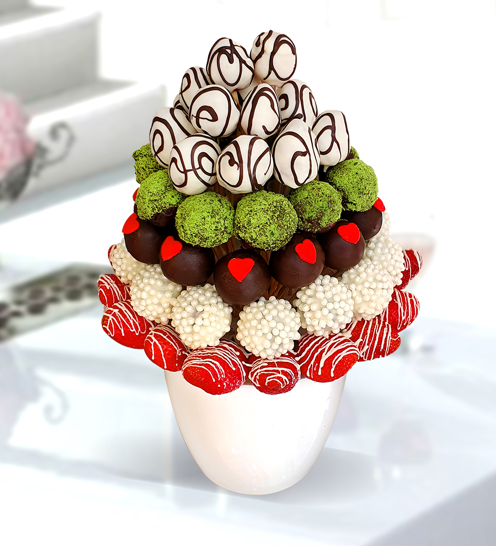 Ürünümüzde yaklaşık olarak 12 adet üzeri çizimli çilek, 15adet çikolatalı çilek, 10 adet pirinç patlak çikolatalı truffle, 10 adet bitter çikolatalı truffle, 12 adet fıstıklı çikolatalı truffle bulunmaktadır.