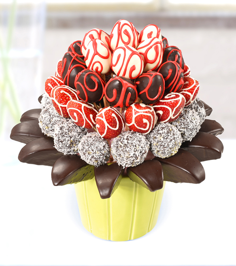 Ürünümüzde yaklaşık olarak 16 adet çikolata kaplı elma dilimi, 14 adet çikolata ve hindistan cevizi kaplı truffle, 31 adet sade işlemeli ve çikolata kaplı çilek bulunmaktadır.