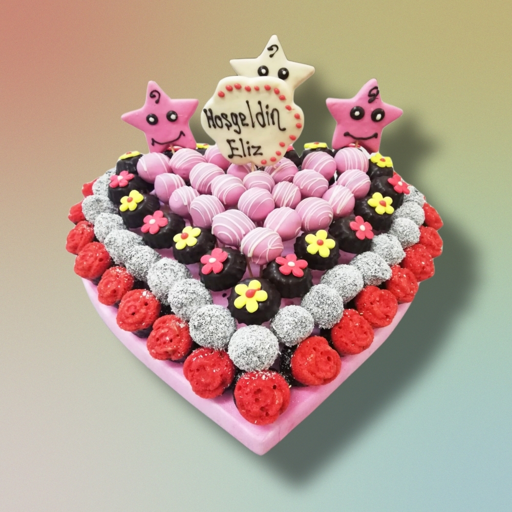 Ürünümüzde yaklaşık olarak 25 adet gül kek, 46 adet çikolatalı lezzet topları, 3 adet çikolatalı yıldız kurabiye ve 1 adet çikolatalı papatya mesaj kurabiyesi bulunmaktadır.