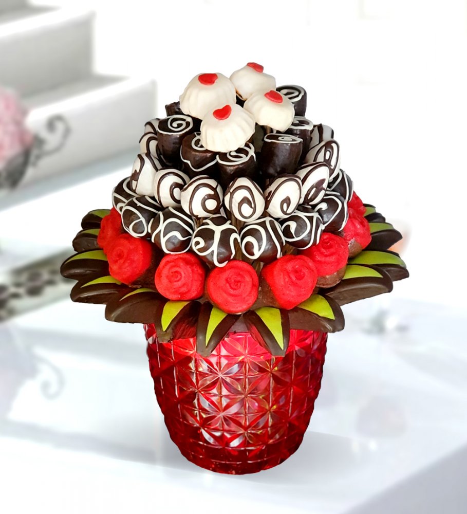 Ürünümüzde yaklaşık olarak 20 adet çikolatalı elma dilimi, 14 adet gül kek, 14 adet truffle, 14 adet çikolatalı çilek, 9 adet çikolatalı muz dilimi, 4 adet çikolatalı kurabiye bulunmaktadır.