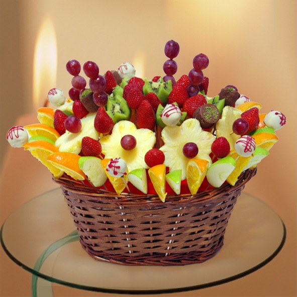 Ürünümüzde yaklaşık olarak 20 adet portakal dilimi, 20 adet elma dilimi, 8 adet ananas dilimi, 30 adet üzüm, 10 adet çikolatalı muz dilimi, 10 adet beyaz çikolatalı truffle, 6 adet kivi 20 adet çilek bulunmaktadır.